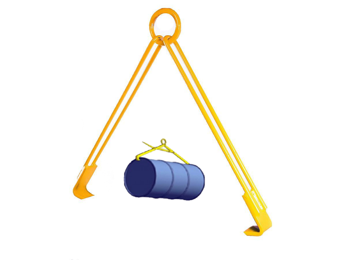 Клещевой подъемный захват - использует в качестве грузозахвата рычаги, внешне напоминающие клещи. Крепится такой инструмент к крюку крана при помощи одноветвевого стропа, а на бочке он фиксируется за ее верхние окантовки с двух сторон ручками.