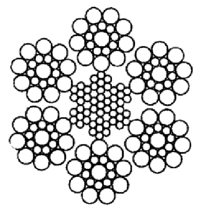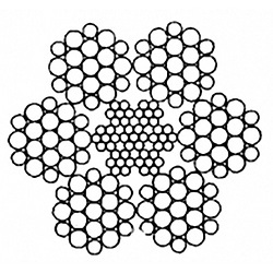 Канат двойной свивки типа ЛК-0 конструкции 6х19(1+9+9)+7х7(1+6)