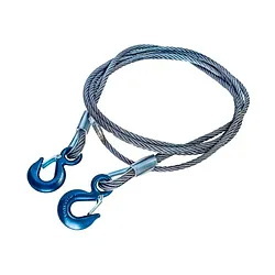 Стальные тросы обычно используют для буксировки спецтехники: грузовых автомобилей, тракторов, внедорожников и т.п. Стальные тросы прочны и не подвержены многим загрязнениям, могут эксплуатироваться в агрессивных условиях. Но в связи с тем, что стальные канаты обладают небольшой гибкостью, не следует превышать рабочую нагрузку, так как при разрыве канат может ударить автомобиль или находящегося рядом человека. Тросы изготавливаются способом опрессовки. Могут быть оснащены различными концевыми элементами: петли, крюки, скобы.