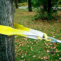 Корозащитные стропы нужны, когда для эвакуации застрявшего автомобиля планируется использовать лебедку, а в качестве опорной точки – дерево. Строп упрощает крепление лебедки к дереву, а также защищает кору ствола от повреждений. Точка крепления к дереву должна быть как можно ближе к земле. Перед креплением стропы и началом буксировки убедитесь, что дерево выдержит прикладываемую нагрузку.