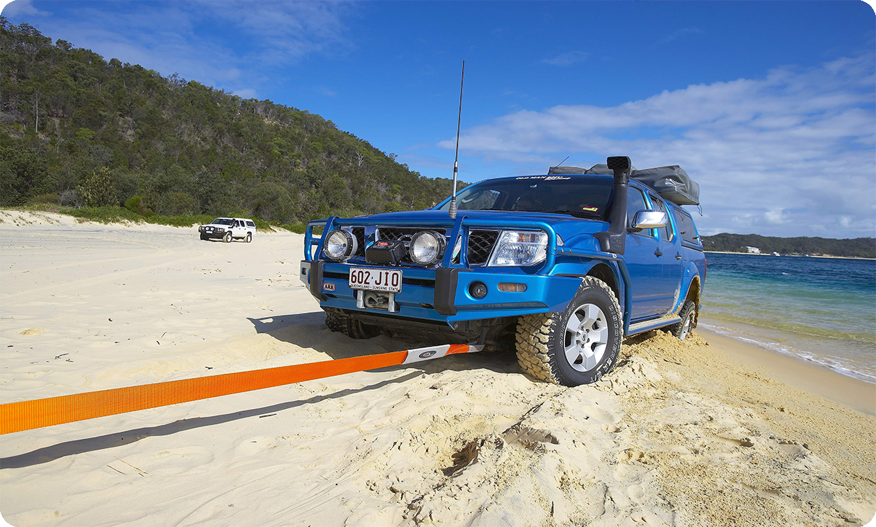 Удлинитель лебедочного троса представляет собой текстильный строп или буксир с двумя петлями. Используется для наращивания длины лебедочного троса, когда ее не достаточно, чтобы закрепиться в опорной точке и вытянуть автомобиль.