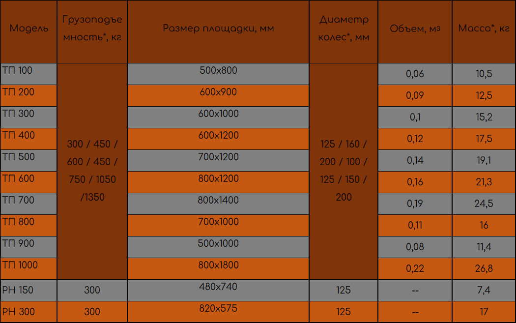 Тележка платформенная металлическая (ТП) предназначена для перевозки среднегабаритных и упакованных грузов. Каркас тележки изготовлен из профильной трубы, настил – металлический лист. Края платформы закруглены, что уменьшает вероятность травматизма и жесткого соприкосновения с препятствием. Площадка для крепления колес унифицирована под два межосевых размера крепления колес. Покраска изделия – порошковая, высокотемпературная. Универсальные опорные площадки для установки колес диаметром от 125мм до 200мм различных типов.