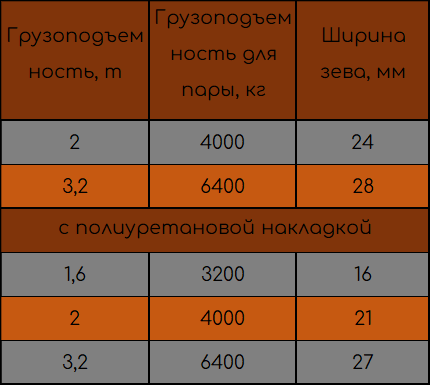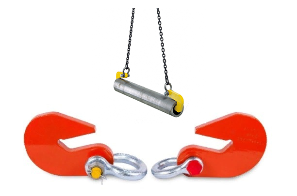Ширина проема в крюке для торцевого захвата труб достаточна, чтобы в нее проходила стенка большинства стандартных деталей. Материал, из которого изготовлены захваты, это прочнейший металлический сплав, способный выдержать достаточно большие нагрузки. Есть модификации с полиуретановыми вставками, для защиты труб.